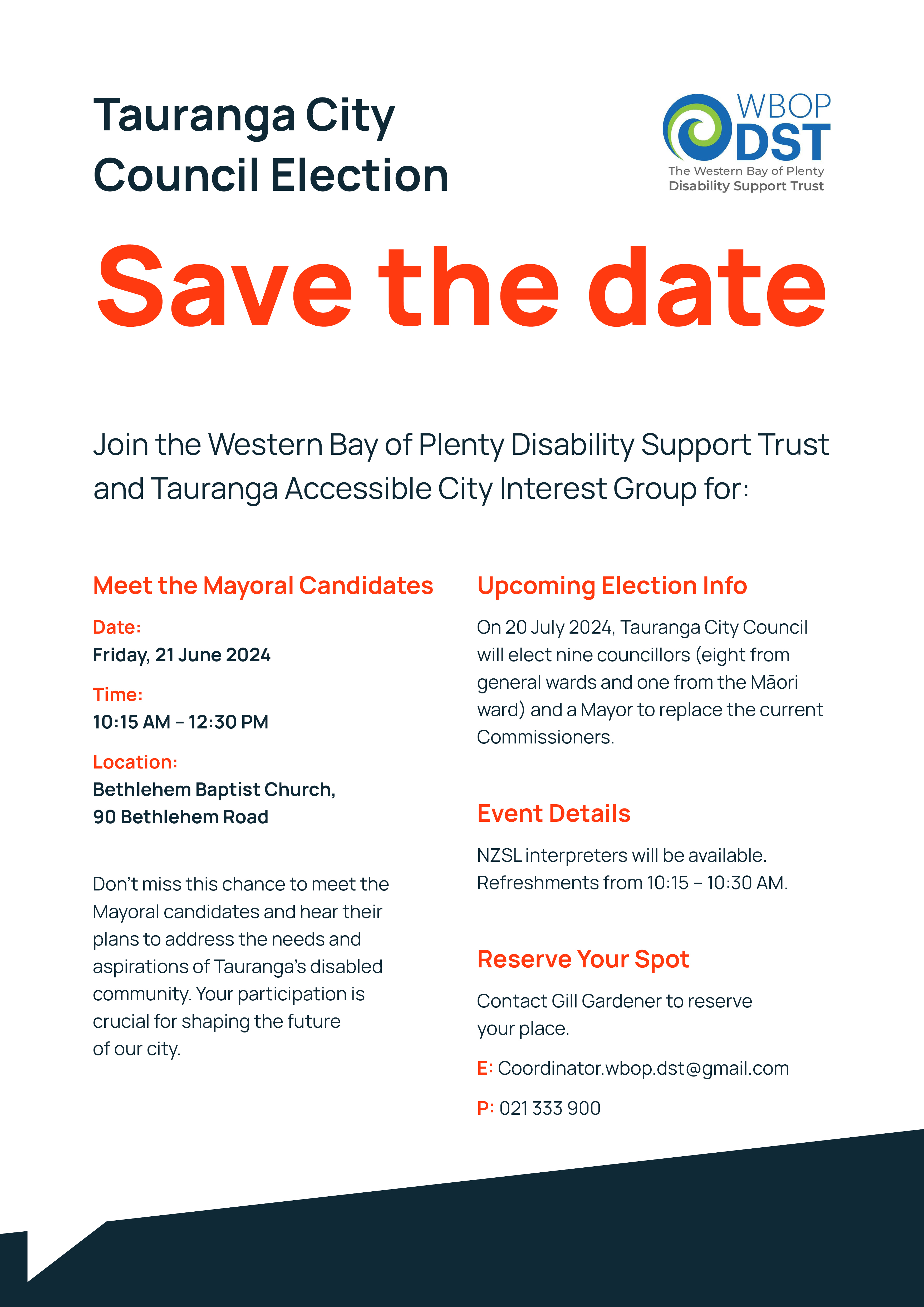 If you require New Zealand Sign Language (NZSL) interpreters, just let us know by 14 October 2024, and we’ll make sure arrangements are in place.