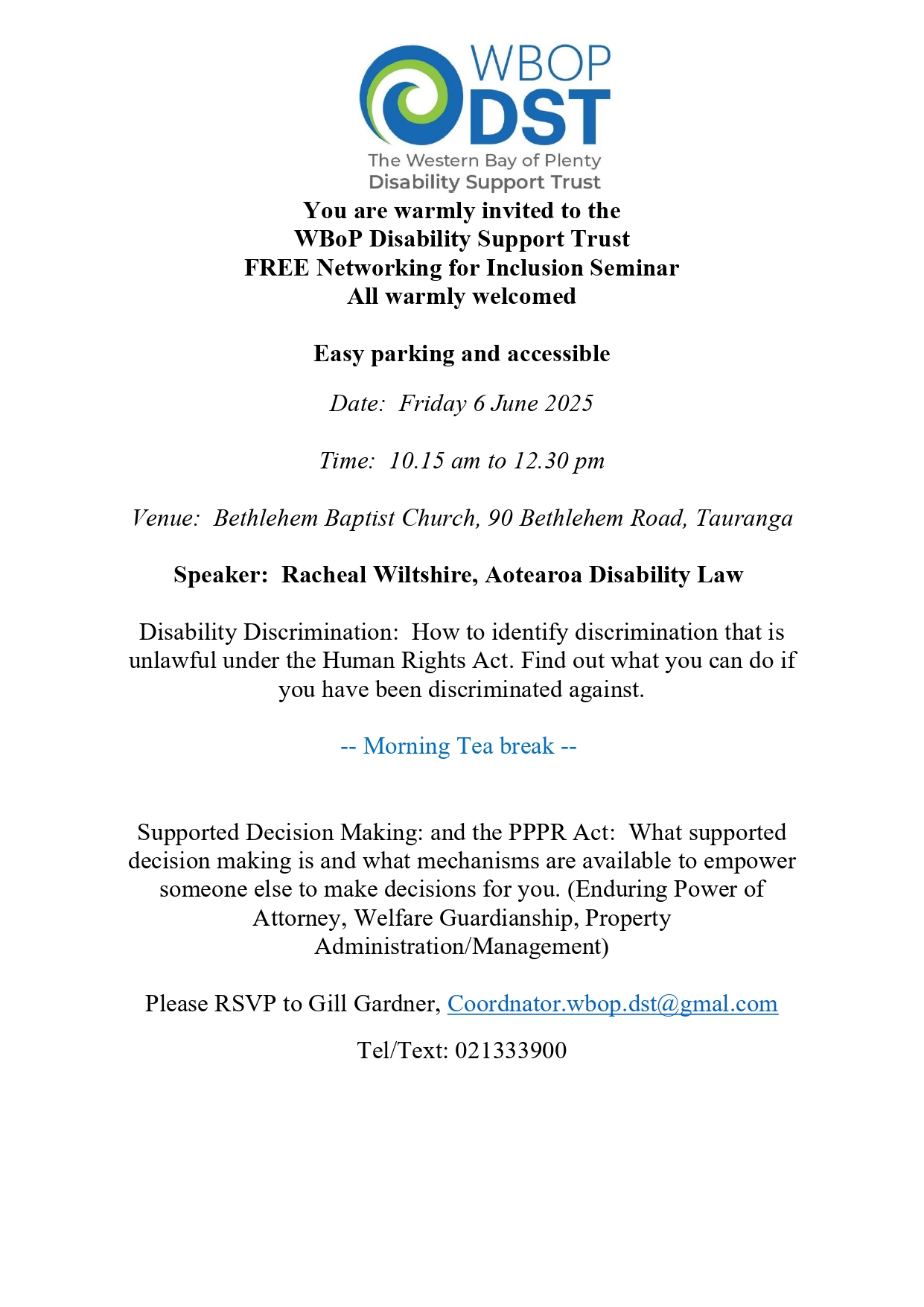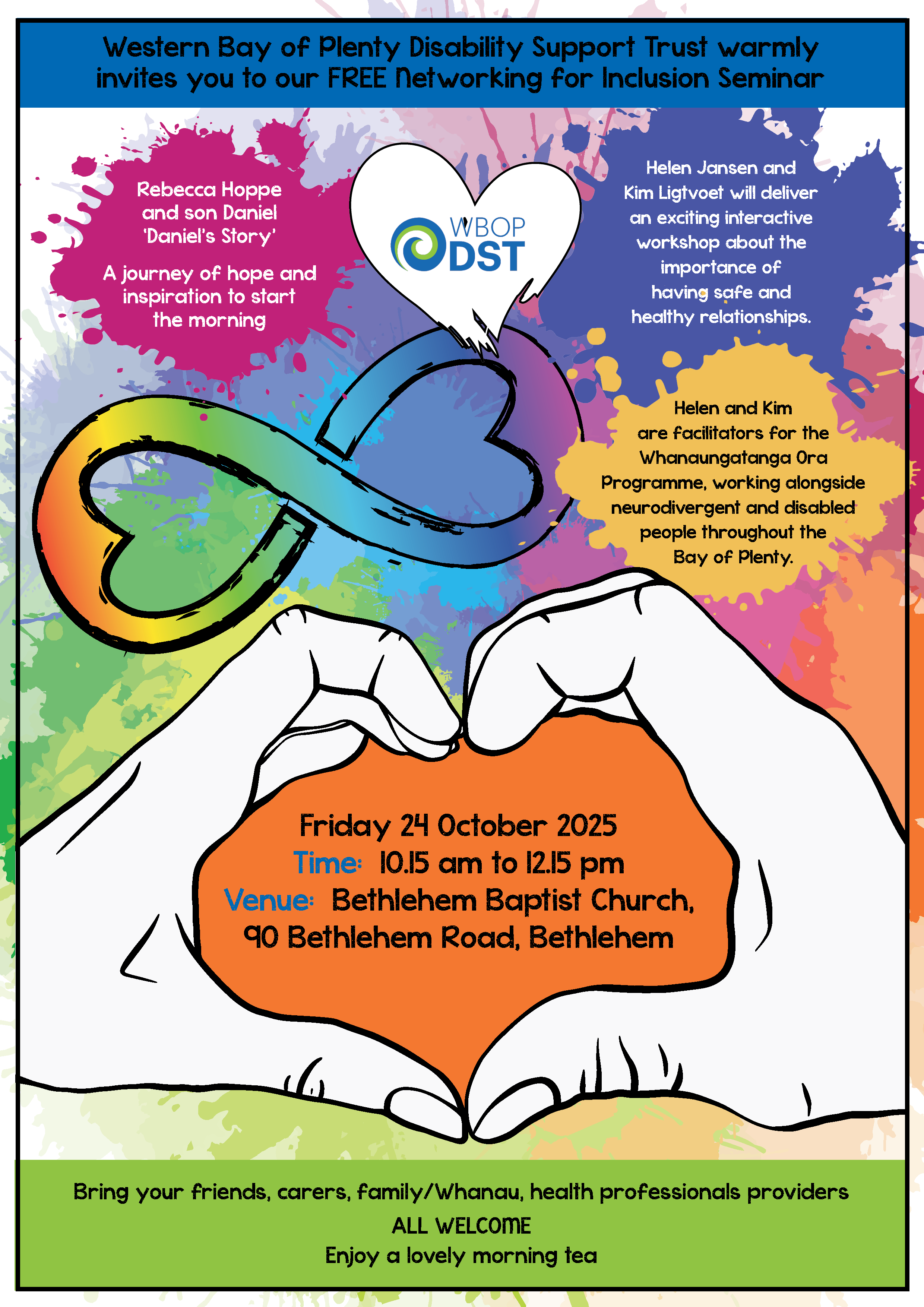 Everyone’s welcome! Feel free to bring along your friends, family/whānau, carers, health providers, and anyone involved in disability support groups. It’s a chance to meet others, share experiences, and build a stronger, more inclusive community.